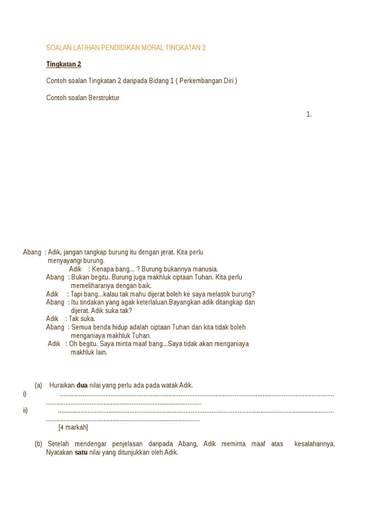 Soalan Latihan Pendidikan Moral Tingkatan 2 Pdf